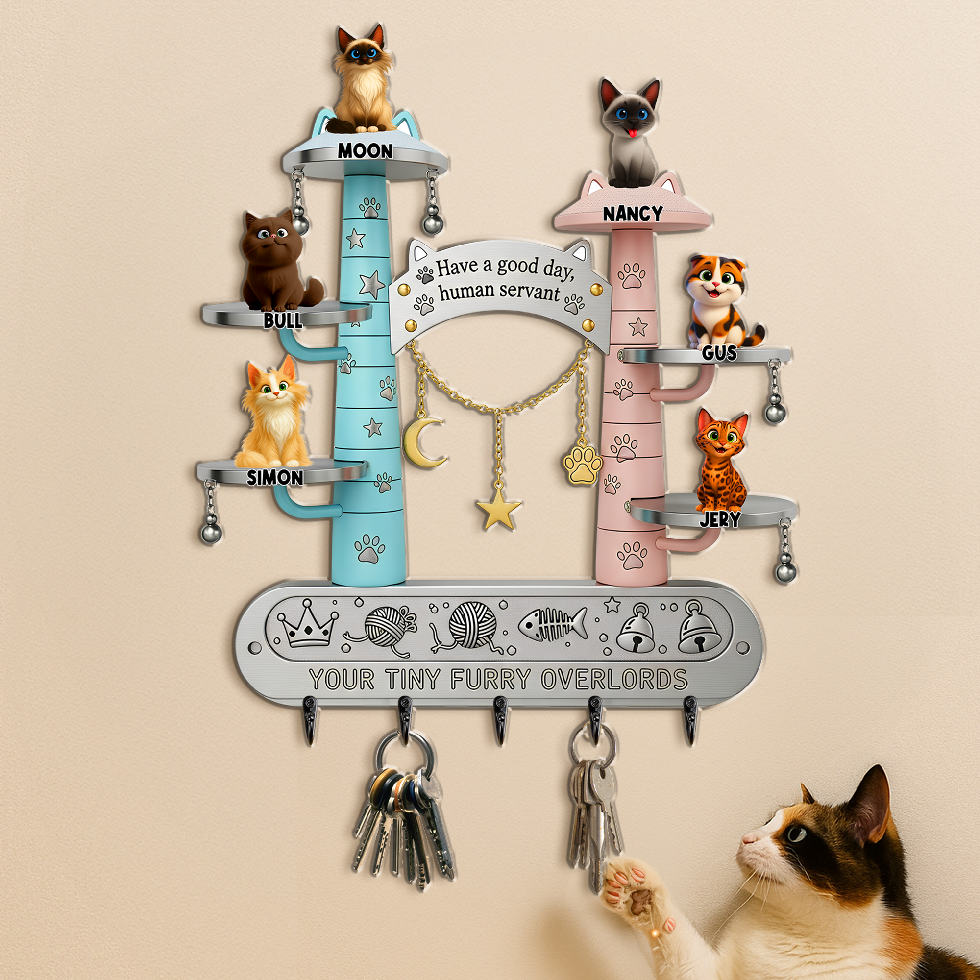Discover stylish wood key hangers, perfect for organizing your space. Ideal personalized gifts for cat lovers, combining functionality with a personal touch.