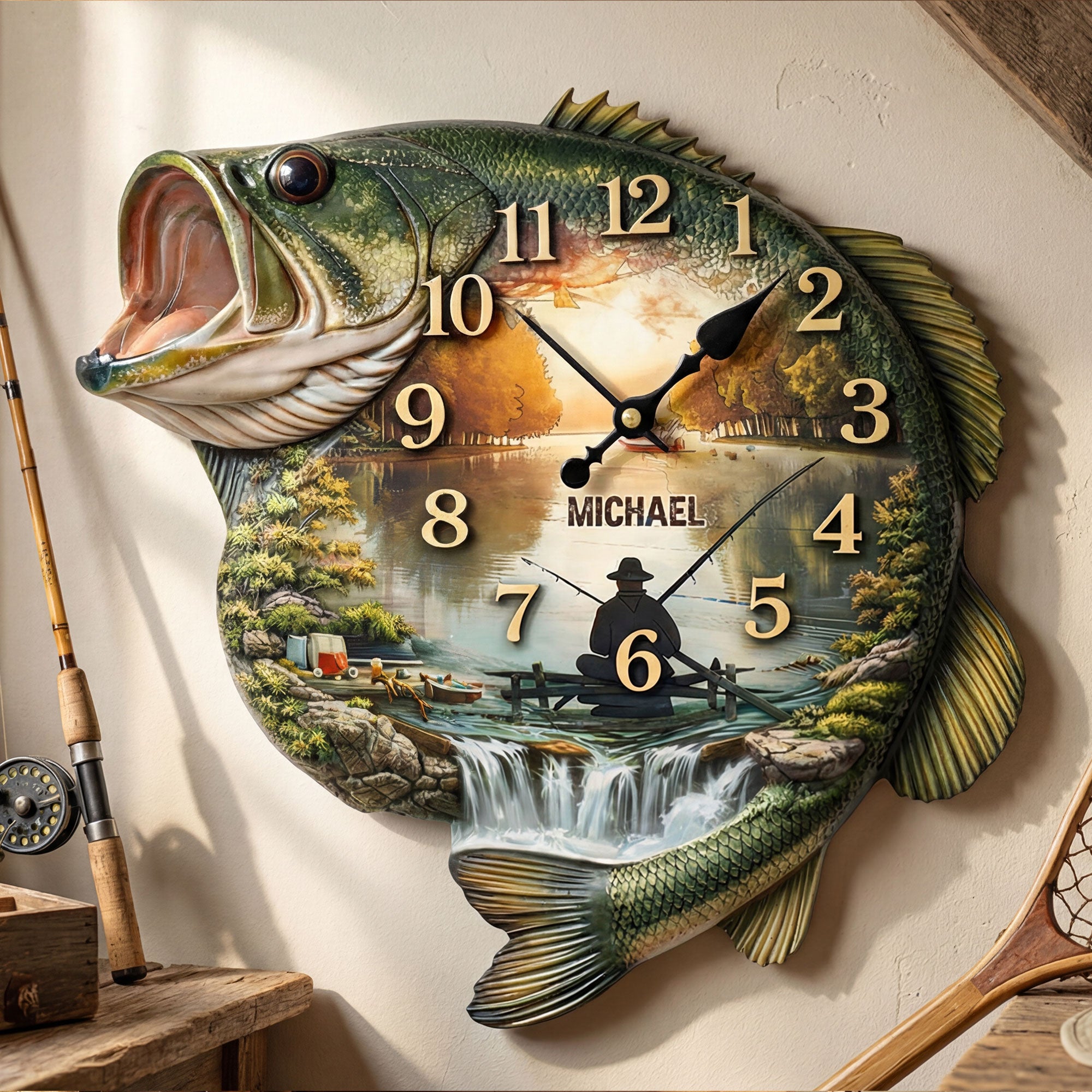 Fishing Lake Scene Acrylic Clock – Personalized Gifts For Fishing Lovers 01huti240126