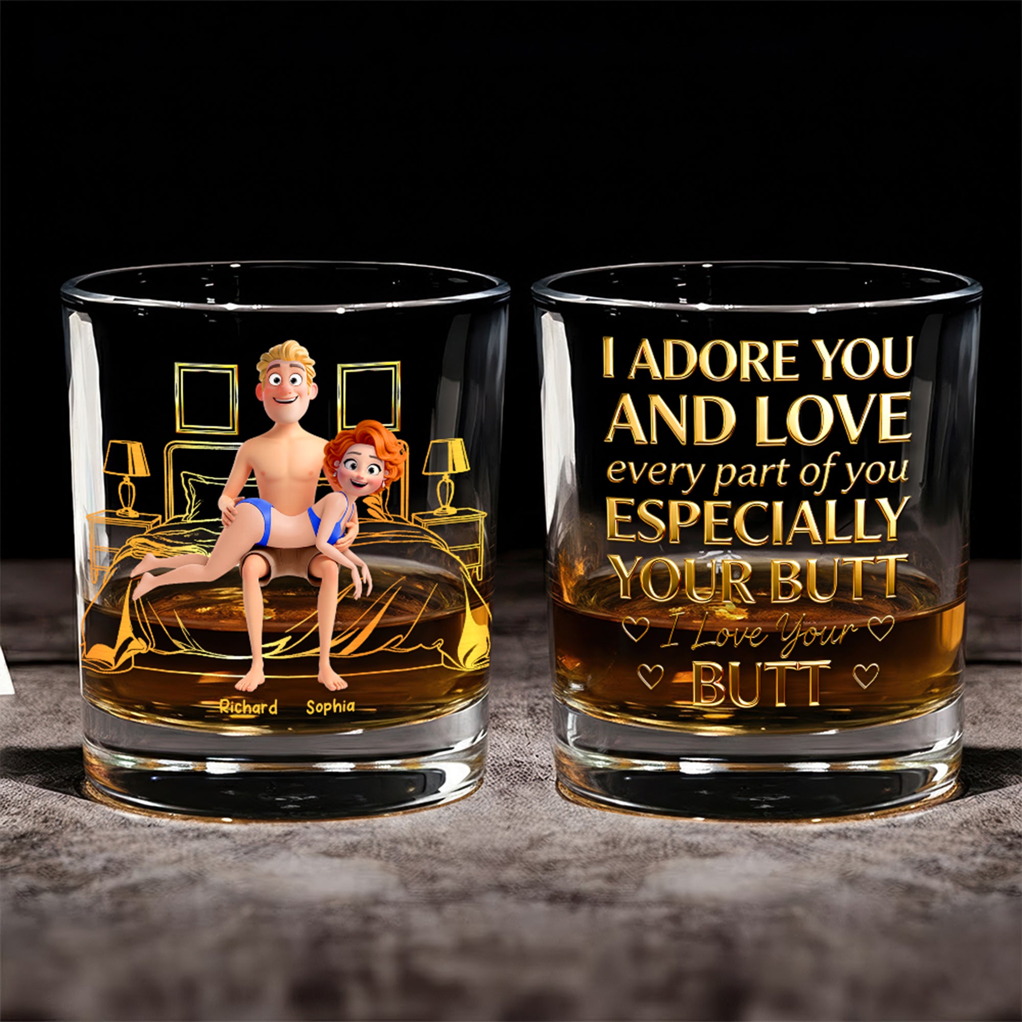Discover the elegance of glasses, enhancing every sip. Perfect personalized gifts for couple, these glasses add a touch of class to any collection.