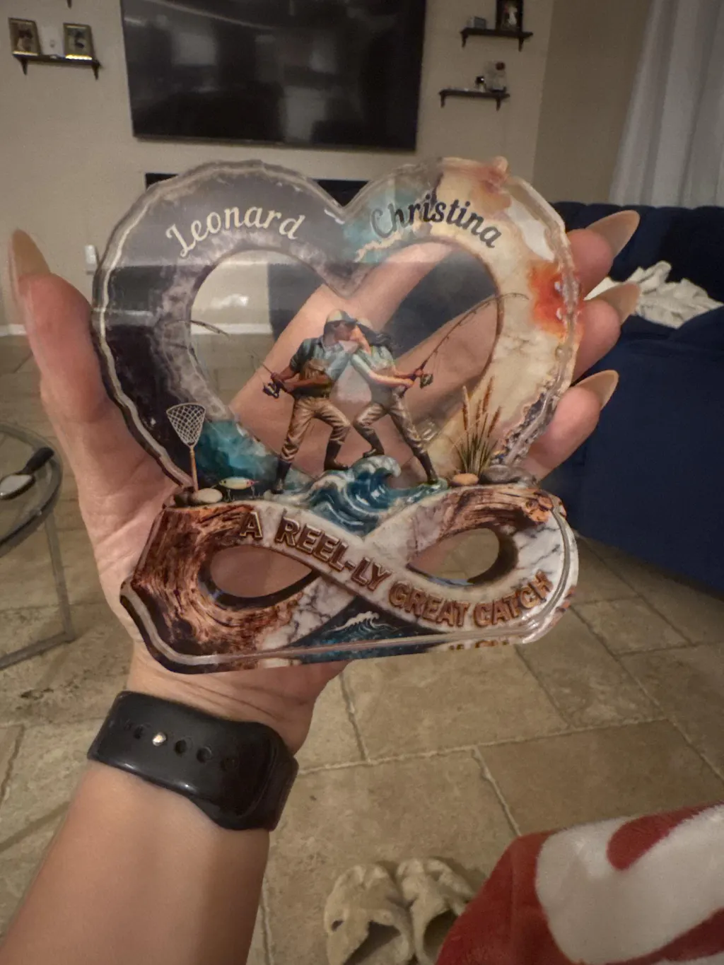 Received my couples fishing plaque…so adorable the finish, quality is all amazing it was just a lot smaller than I thought it would be. And it would be cuter if it came with a stand to make it taller. But husband and I still love it!